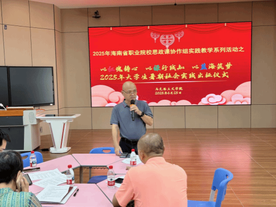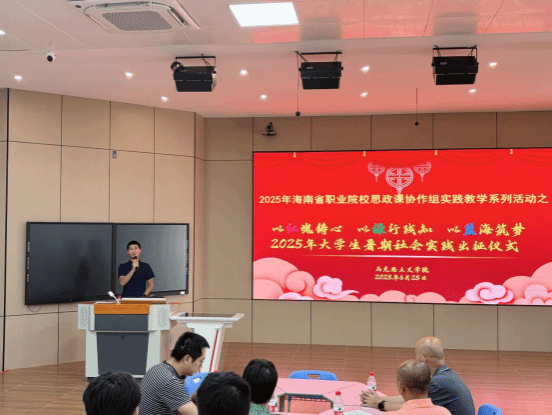 根据海南经贸职业技术学院马克思主义学院示范马院建设规划安排,6月26日下午,大学生暑期社会实践出征仪式在1教238教室举行,该活动亦是海南省职业院校思政课协作组实践教学系列活动之一。海南经贸职业技术学院学工处处长符绩彰、教务处副处长蔡于博出席。马克思主义学院书领导班子及带队老师和学生参加了本次出征仪式。